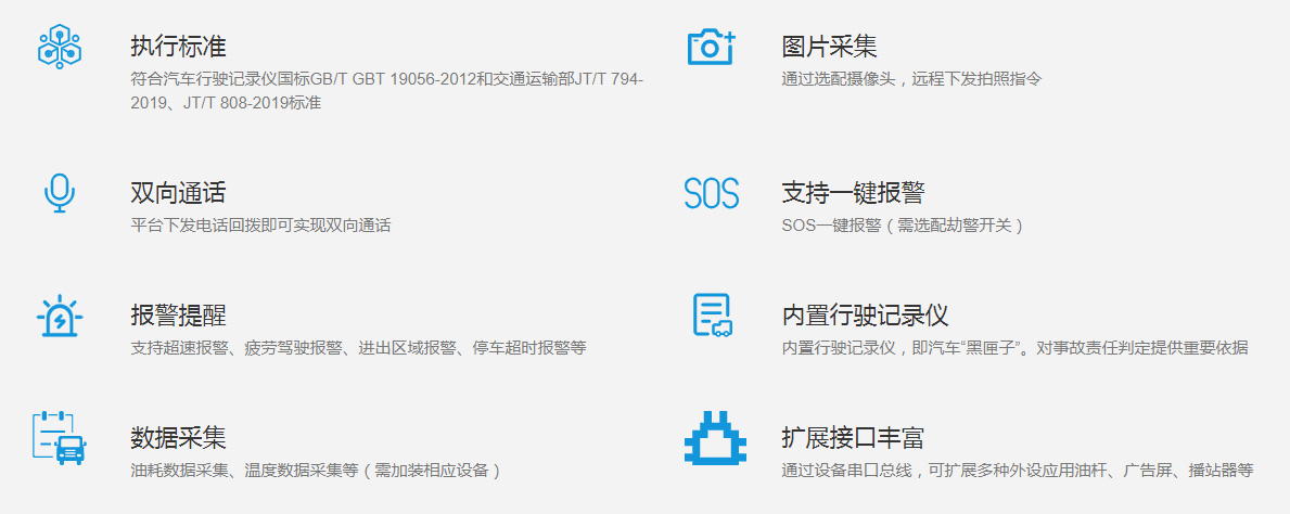 产品概述:北斗部标一体机A6L是一款集定位、2G/3G/4G通讯、车辆远程监控于一体的车载监控终端,符合汽车行驶记录仪国标GB/T GBT 19056-2012和交通运输部JT/T 794-2019、JT/T 808-2019标准