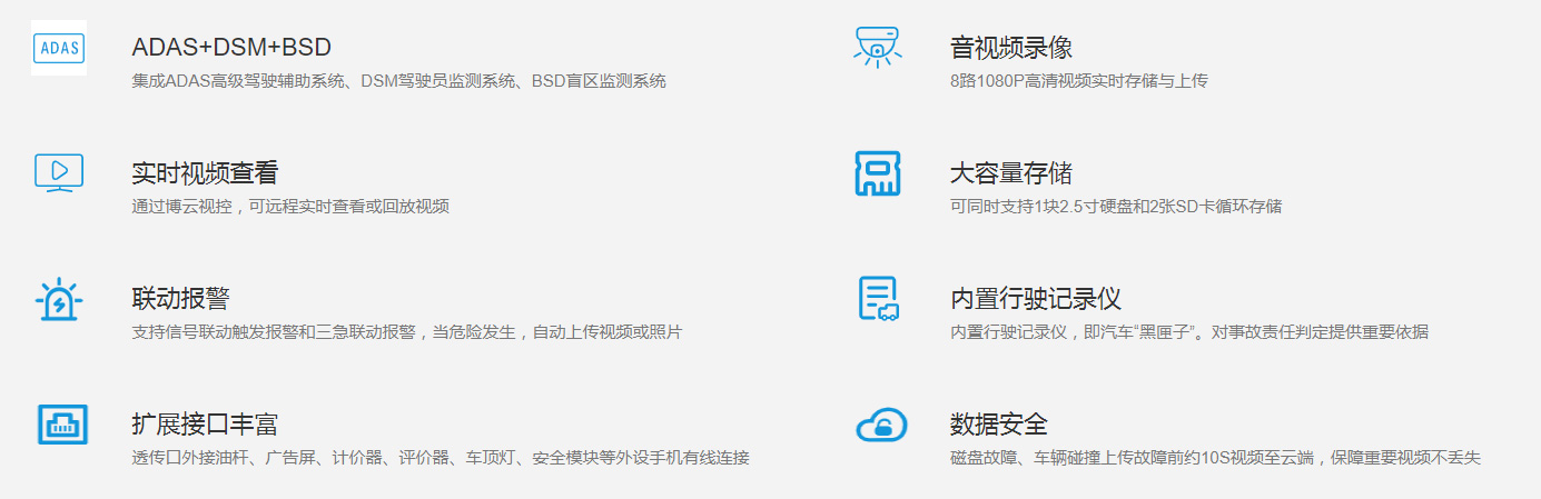 | 实时录像 | 支持 | 透传口 | 接载重传感器/LED广告屏/计价器等外设 |