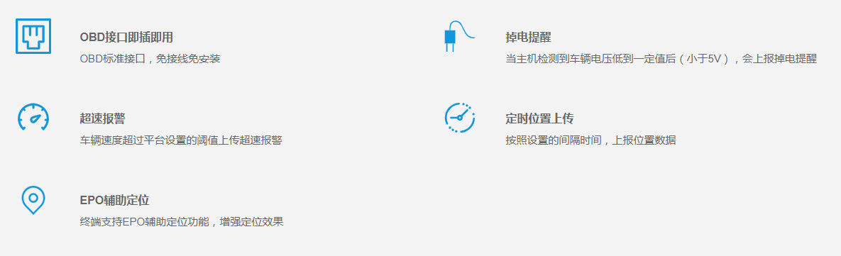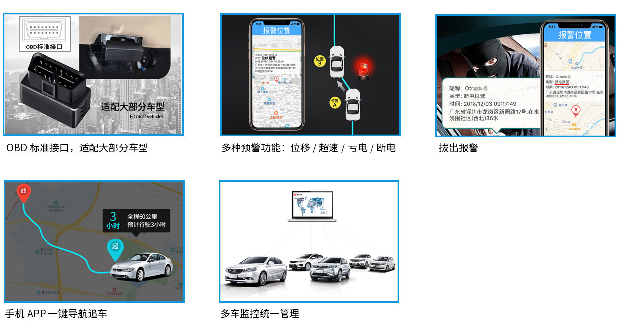 产品概述:即插即用的车载GPS定位器,免接线免安装,24小时全天候监控车辆,北斗+GPS+LBS+EPO多重定位技术,更快更精准。