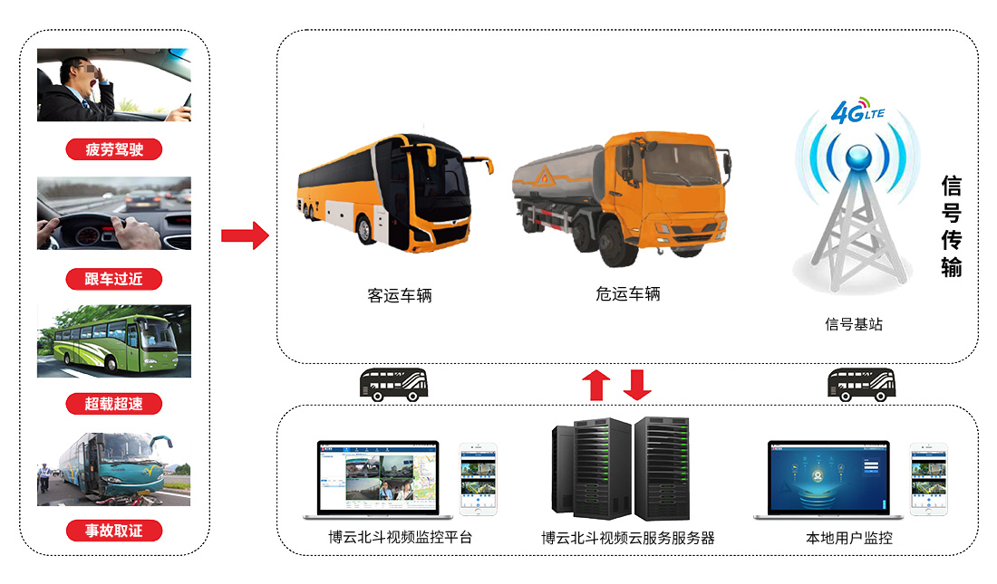 | 近些年来,在我国道路运输重特大事故中,很多都涉及“两客一危”车辆。在发生的这些交通事故中,大部分的道路交通事故是由于司机在某种程度上注意力分散造成的:驾疲劳驾驶、抽烟、左顾右盼和开车时发信息或接听电话,这些行为大大增加了发生事故的风险。 2018年,交通部下发《交通运输部办公厅关于推广应用智能视频监控报警技术的通知》,明确要求:要完善长途客运车辆、旅游客车、危险物品运输车辆制造标准,提高安全性能,强制安装智能视频监控报警、防碰撞和整车整船安全运行监管技术装备,对已运行的要加快安全技术装备改造升级。 |