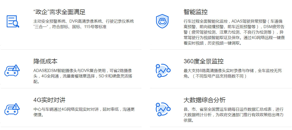 | 近些年来,在我国道路运输重特大事故中,很多都涉及“两客一危”车辆。在发生的这些交通事故中,大部分的道路交通事故是由于司机在某种程度上注意力分散造成的:驾疲劳驾驶、抽烟、左顾右盼和开车时发信息或接听电话,这些行为大大增加了发生事故的风险。 2018年,交通部下发《交通运输部办公厅关于推广应用智能视频监控报警技术的通知》,明确要求:要完善长途客运车辆、旅游客车、危险物品运输车辆制造标准,提高安全性能,强制安装智能视频监控报警、防碰撞和整车整船安全运行监管技术装备,对已运行的要加快安全技术装备改造升级。 |