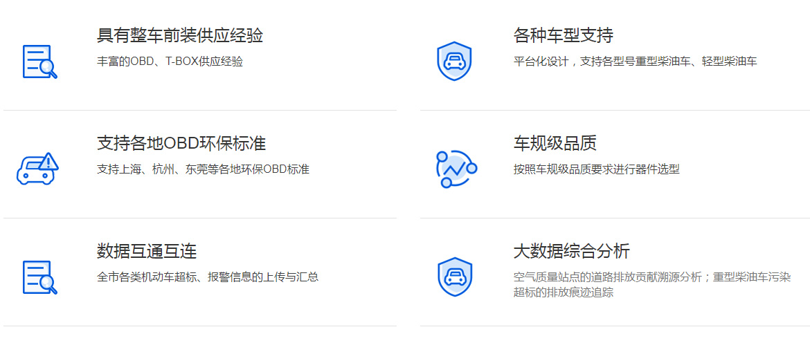 重型柴油车OBD远程监控平台解决方案,以“系统平台+咨询服务”相结合的方式,建设重型柴油车OBD数据联网与分析平台,实现OBD数据的联网与综合分析应用,结合遥感监测数据和环保检测数据,深度挖掘车辆运行状态与尾气排放的关系,为政府部门有针对性地开展柴油车排污治理提供支撑。
